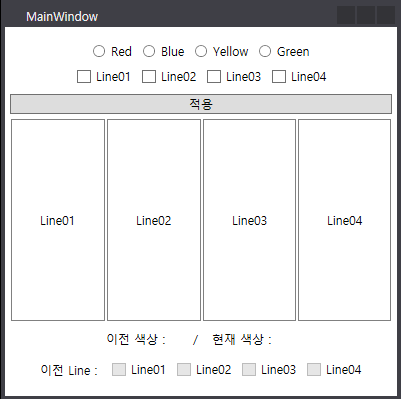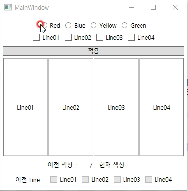 - radiobuon(Yellow), Line01, Line02, Line03, Line04(CheckBox) 선택, 적용