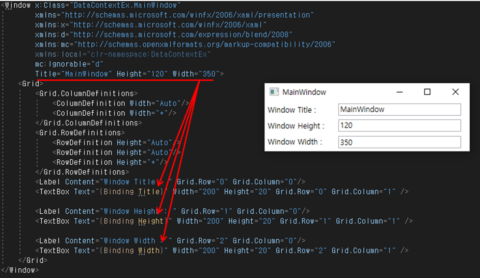 · MainWindow의 자식 컨트롤을 바인딩하여 사용 가능