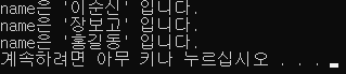 Console.WriteLine($"name은 '{name}' 입니다.");