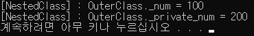 Console.WriteLine($"[NestedClass] : OuterClass._private_num = {this._outer._private_num}");
