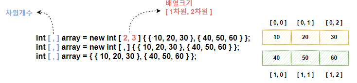int[,] m_array = new int[2, 3] { { 100, 200, 300 }, { 400, 500, 600 } };