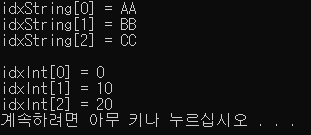 Console.WriteLine($"idxInt[{i}] = {idxInt[i]}");