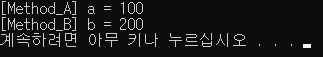 Console.WriteLine($"[Method_B] b는 {b}이다.");