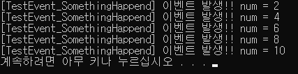 SomethingHappend?.Invoke(string.Format($"짝수 이벤트 발생!! num = {num}"));